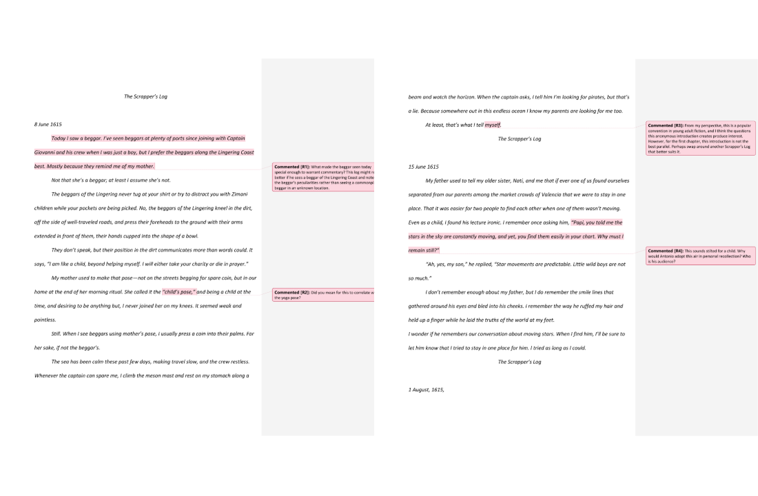 Client wanted my suggestions on characterization and wondered if these diary entries were an appropriate tool.